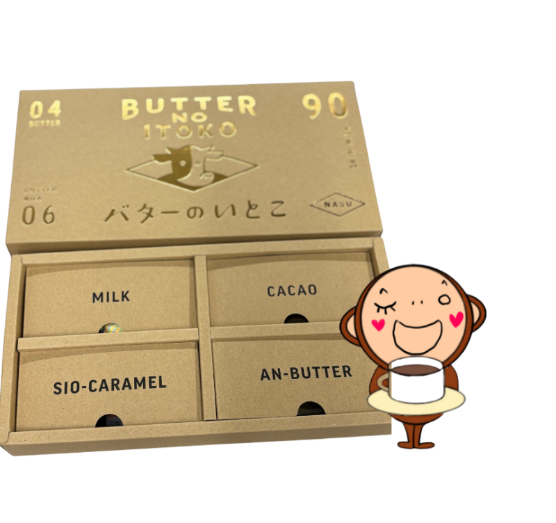 知り合いが東京出張で「何のお土産がいい?」と言われて「空港で帰るお土産でおいしいもの」って「東京ばなな」以外で何がある????せっかちでいらちな彼が「待たせすぎてもう買わん」と言われる前に空港内のおいしいものを探すのは至難の業。。。どうしよう・・・でもおいしいもんは食べたい・・・そこでネットで「空港内のお土産3選」のような絞ってあるブログを見て「これかこれ」と2択のうちの一つがコレ「バターのいとこ」だった。